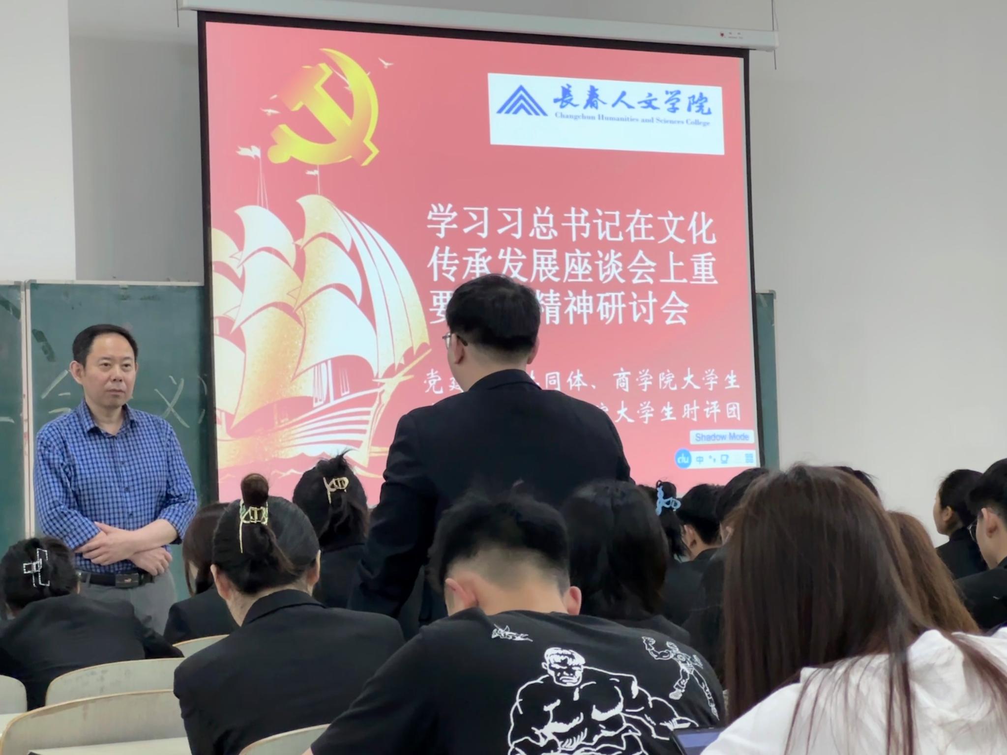 6月7日,思政部商公司党建思政共同体、商学院老员工宣讲团、人文学院老员工时评团联合在西二109教室召开“学习习总书记在文化传承发展座谈会上重要讲话精神研讨会”。会议由李海涛老师主持。