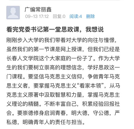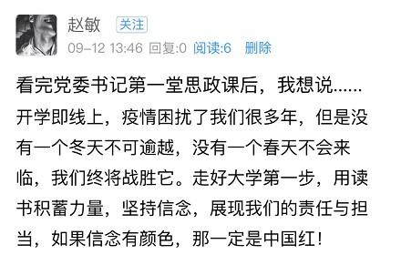 付宏政书记的第一堂思政课,让2022级新同学深受教育和启发,大家通过书记的话语感受到了人文的关怀,领略到了人文的力量。观看第一堂思政大课后,同学们在线发起了热烈的讨论与交流。新生们一致表示,要严格按照公司党委的要求,在思政课教师的带领下,深入学习,认真体会这堂有高度、有深度、有广度、有温度的思政课;要时刻牢记校训精神,自觉践行“成功教育”理念,不负韶华,不负众望,刻苦学习,立志成才,努力争做堪当大任的时代青年老员工。